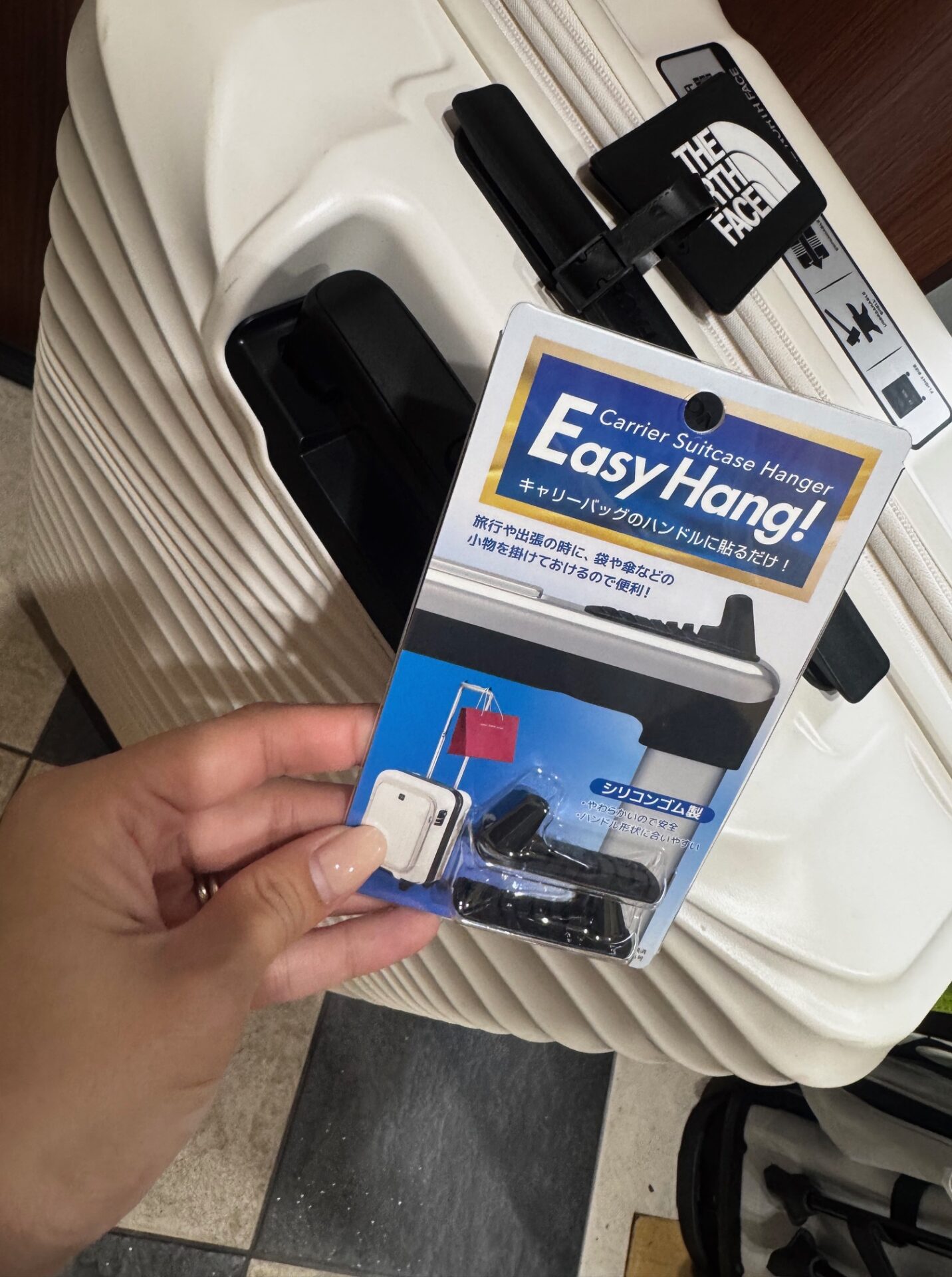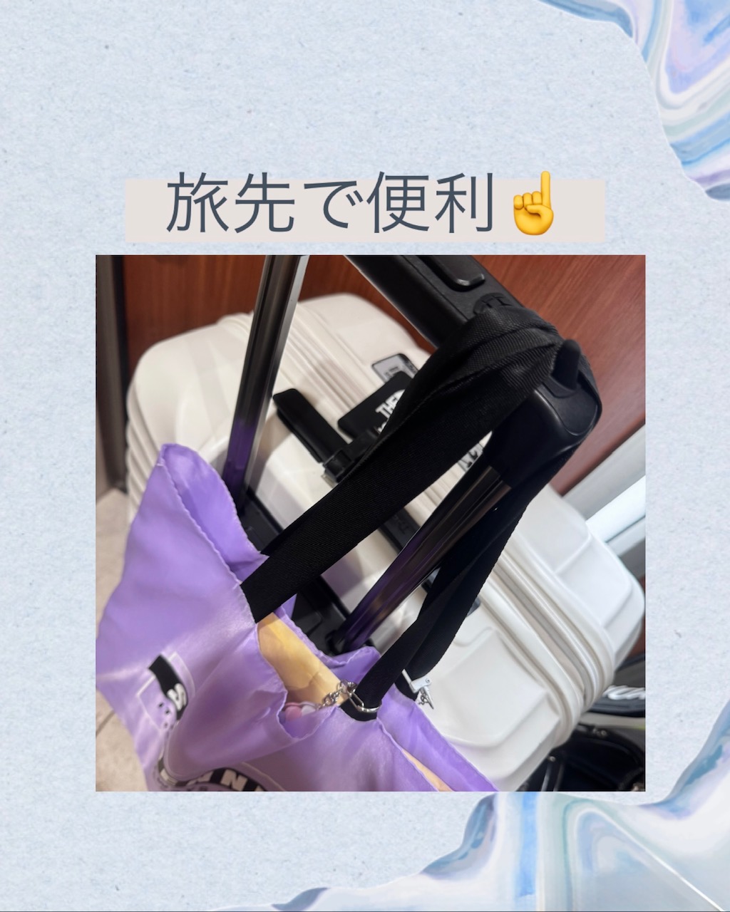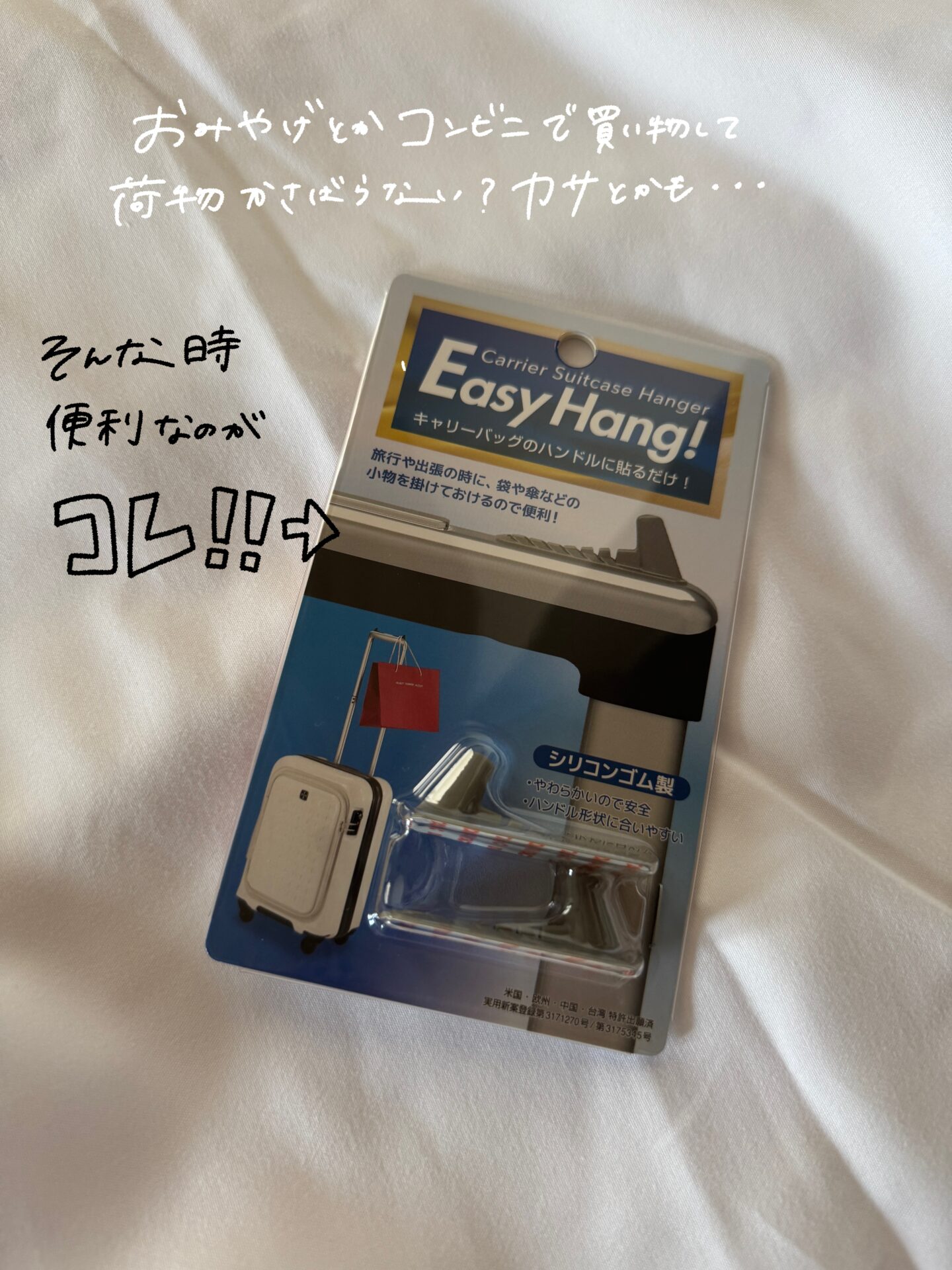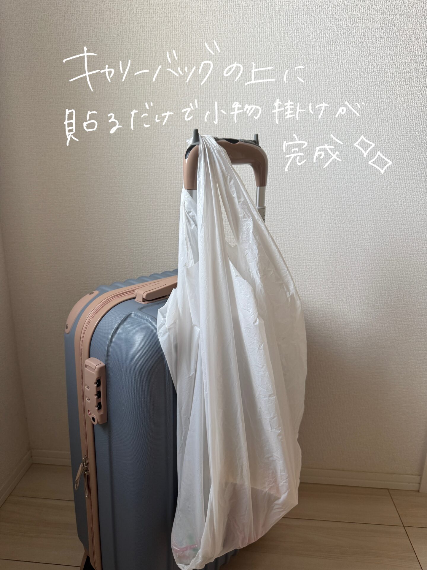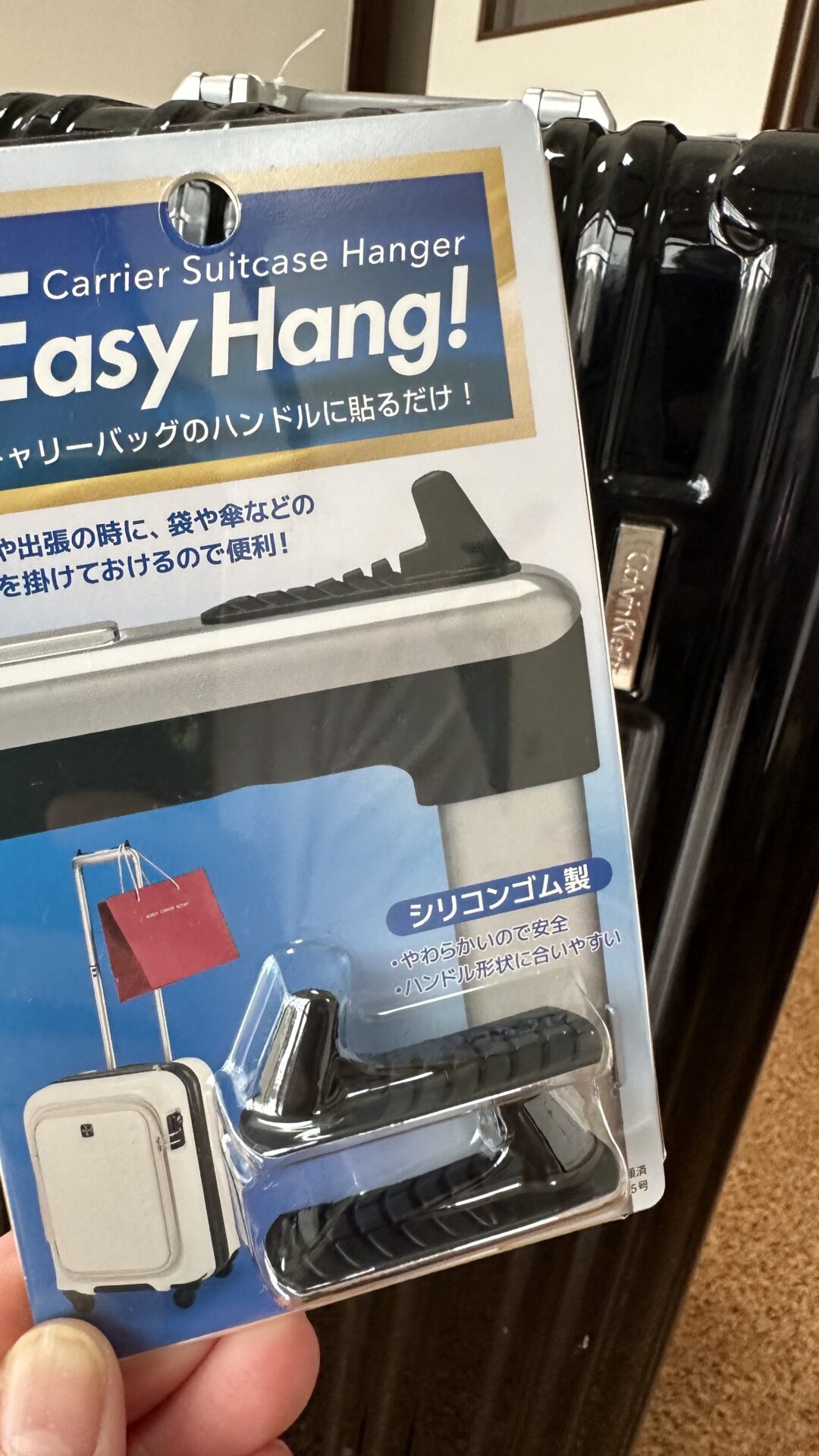 お手持ちのキャリーバッグのハンドルに貼るだけで、小物をかけておくことが出来ます!